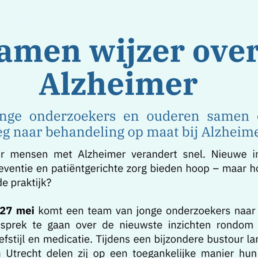 Samen wijzer over Alzheimer -Jonge onderzoekers en ouderen samen op weg naar behandeling op maat bij Alzheimer